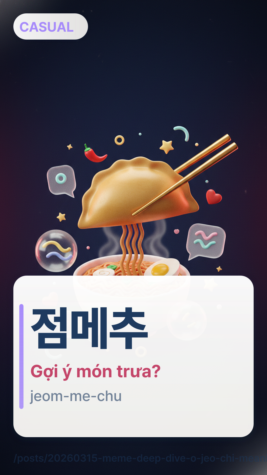 Tìm hiểu ý nghĩa của 오저치고 (O-jeo-chi-go) và 점메추. Nắm vững tiếng lóng về đồ ăn và hậu tố '-go' trong tiếng Hàn để trò chuyện tự nhiên hơn.