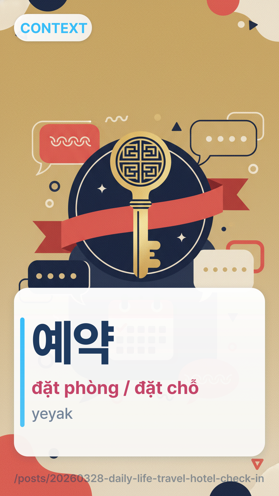 Nắm vững các từ khóa 예약, 체크인 và 조식 để tự tin lưu trú tại khách sạn Hàn Quốc. Học cách yêu cầu lịch sự và các thủ tục nhận phòng cần thiết.