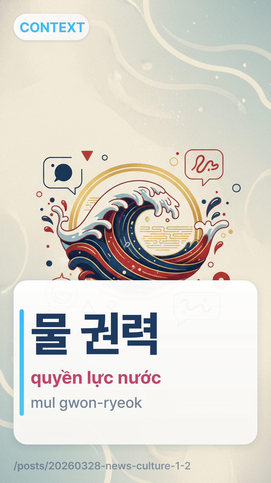 Khi đọc tin tức tiếng Hàn về môi trường, hãy tìm các thuật ngữ kết thúc bằng 권력gwonryeok (quyền lực/thẩm quyền) để xem tài nguyên đang được thảo luận như thế nào trong bối cảnh chính trị. Hiểu những từ ghép này giúp bạn nắm bắt được những bình luận xã hội tiềm ẩn trong báo chí Hàn Quốc.