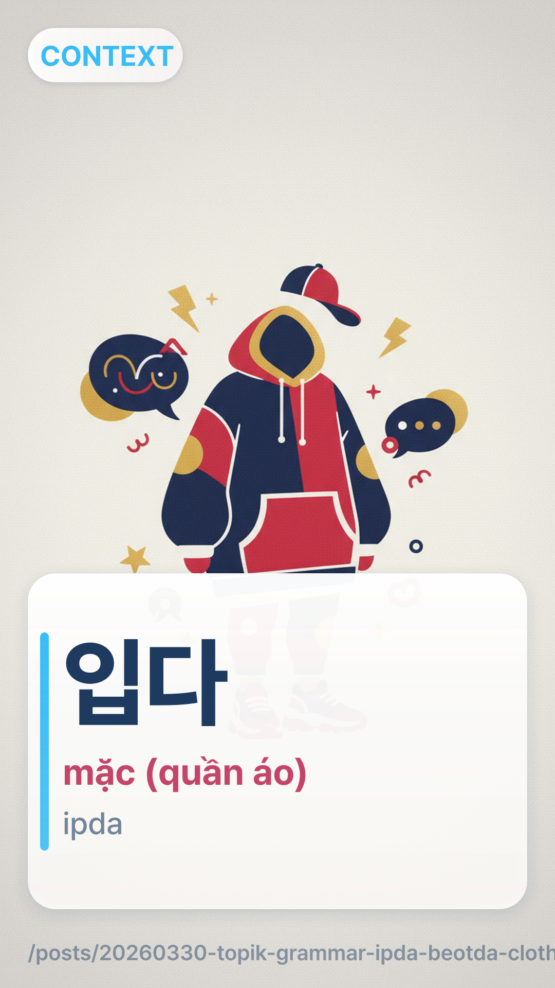 Học cách sử dụng đúng 입다 và 벗다 trong tiếng Hàn. Nắm vững các động từ về trang phục cho kỳ thi TOPIK và đời sống hàng ngày với hướng dẫn và bài tập này.