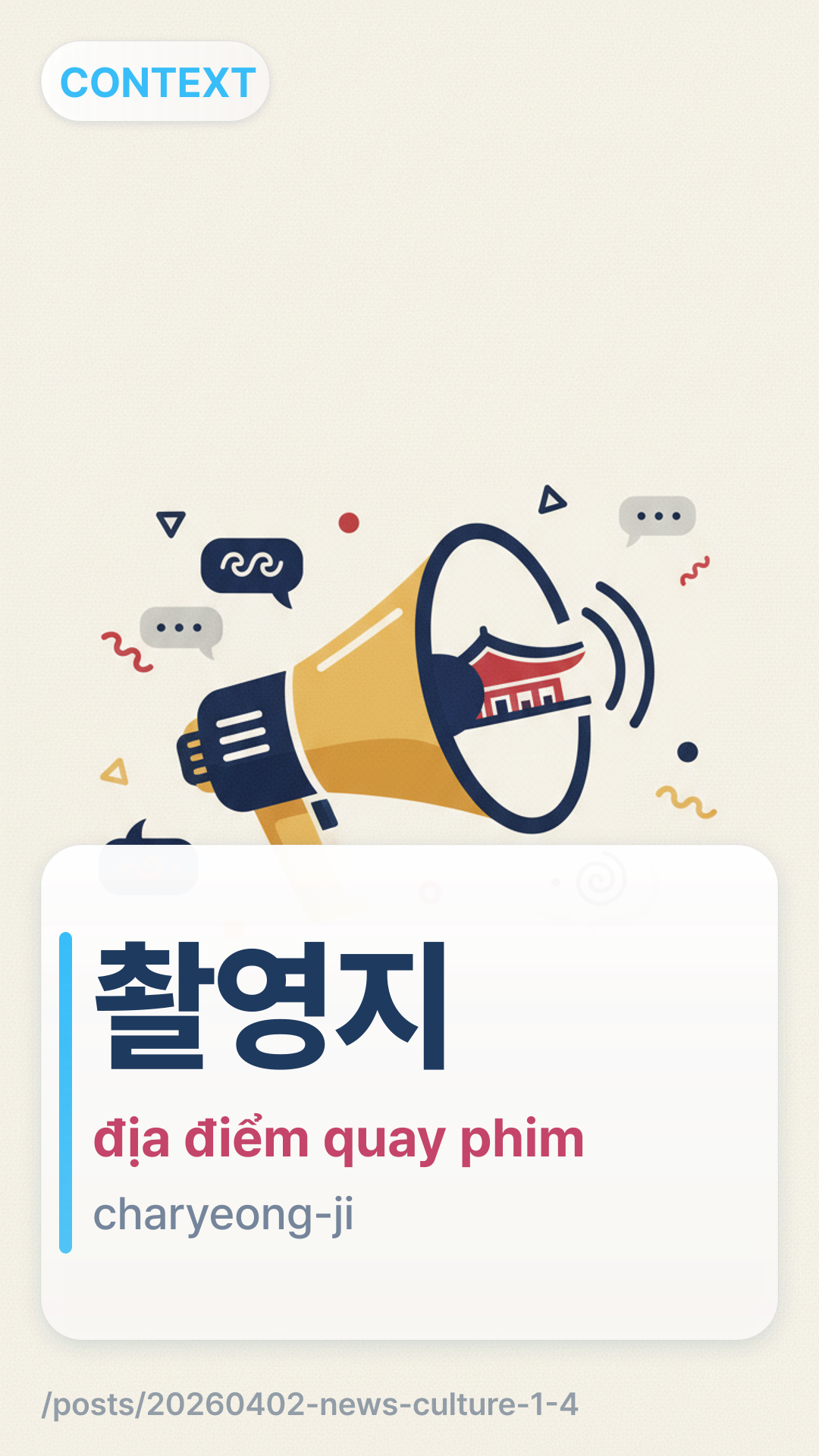 EN brief: 평화접경지 고성군 드라마·영화 촬영지 매력 발산 (culture) + 1 glossary term.
