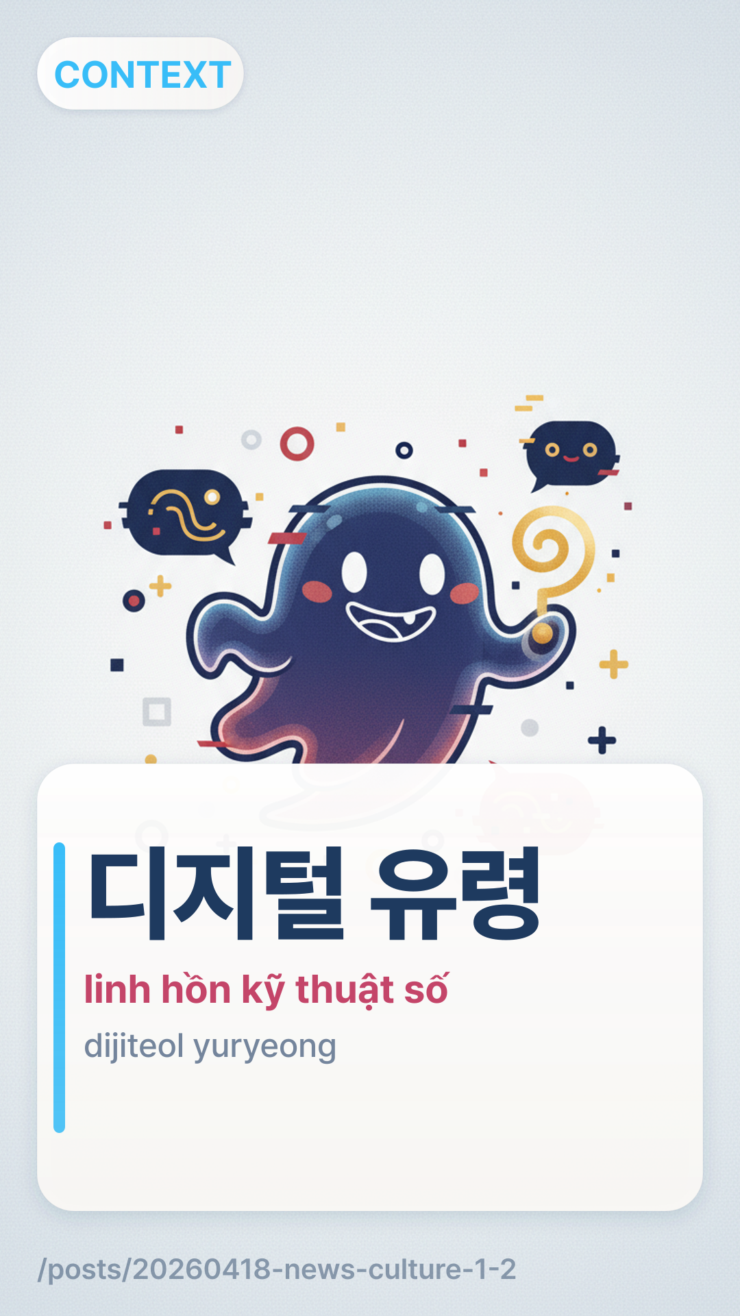 디지털 유령dijiteol yuryeong (Linh hồn kỹ thuật số) đề cập đến các di vật kỹ thuật số hoặc các nhân vật mô phỏng bằng AI của con người, thường được sử dụng để mô tả cảm giác kỳ lạ khi tương tác với các thực thể phi nhân tính bắt chước hành vi hoặc sự hiện diện của con người.