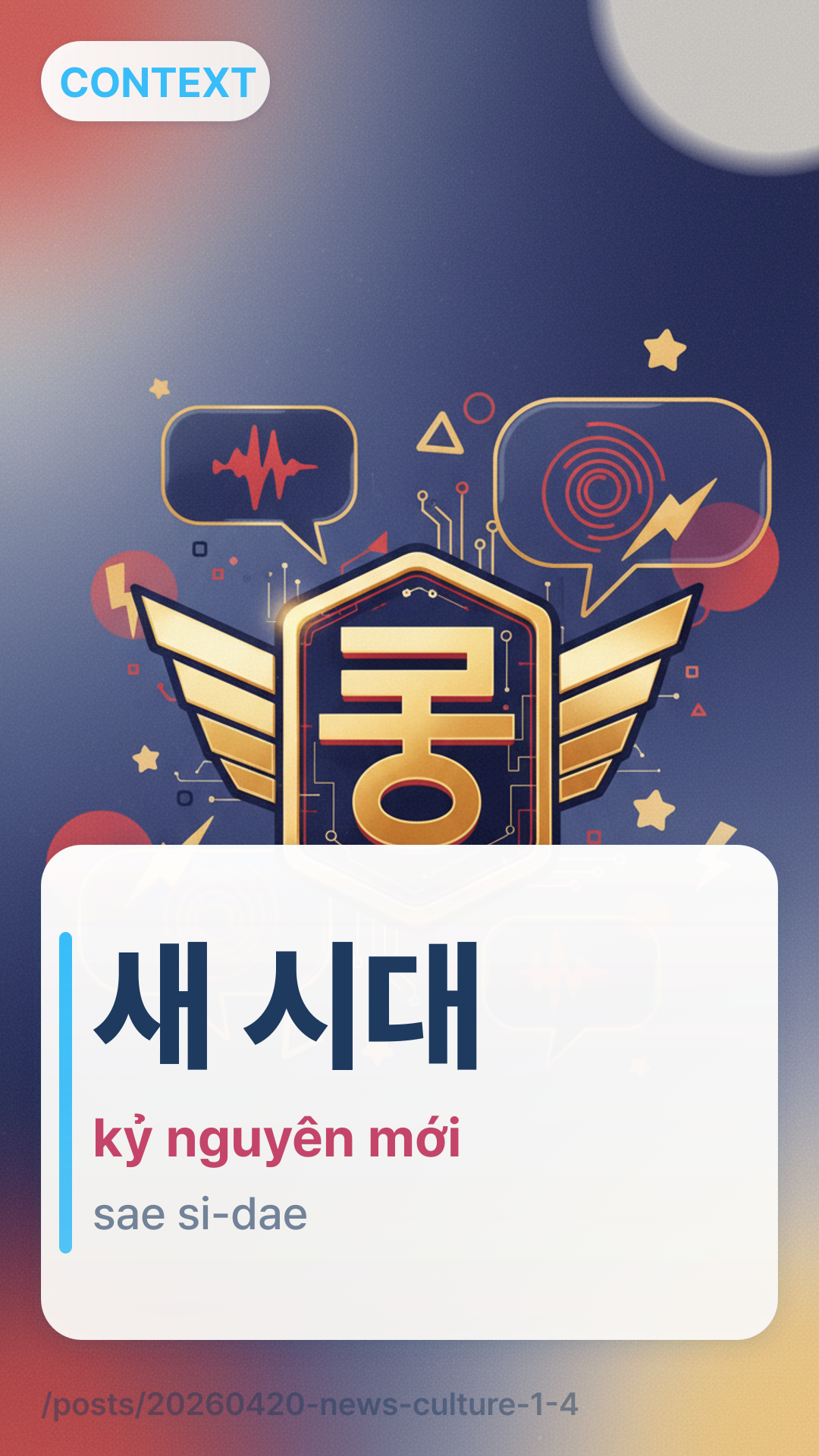 우리는 이제 인공지능이 주도하는 새 시대에 살고 있습니다.urineun ije ingongjineui judohaneun sae sidaee salgo itseupnida. — Hiện nay chúng ta đang sống trong một kỷ nguyên mới do trí tuệ nhân tạo dẫn dắt.