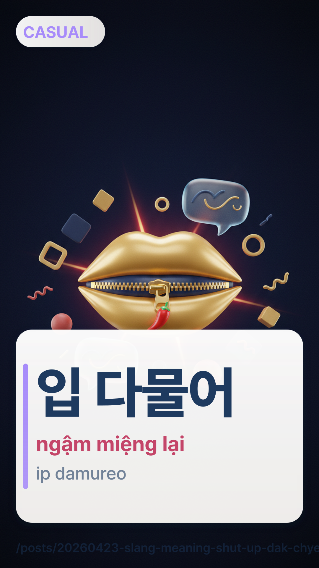 Bạn đang xem một bộ phim K-drama kịch tính như The Glory hoặc Penthouse, và một nhân vật đột nhiên nổi cáu, thốt ra một câu sắc lẹm 닥쳐!dakchyeo! (Dak-chyeo). Phụ đề dịch là "Câm miệng", nhưng phản ứng của các nhân vật khác thường là sự sốc tột độ hoặc leo thang căng thẳng ngay lập tức. Đó không chỉ là một yêu cầu giữ im lặng; đó là một cái tát bằng lời nói.