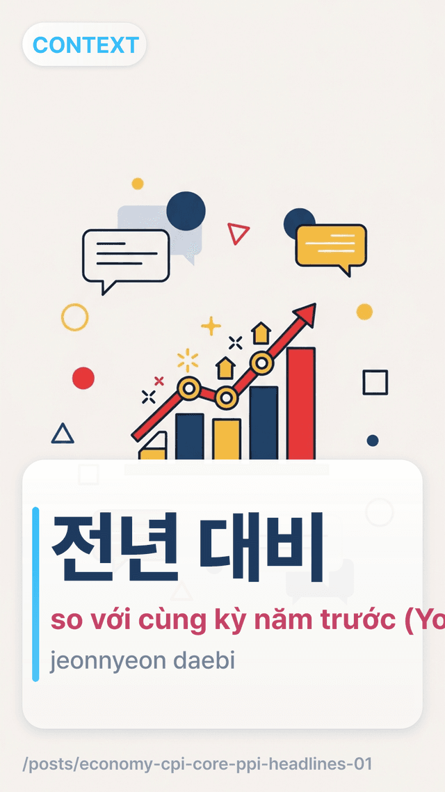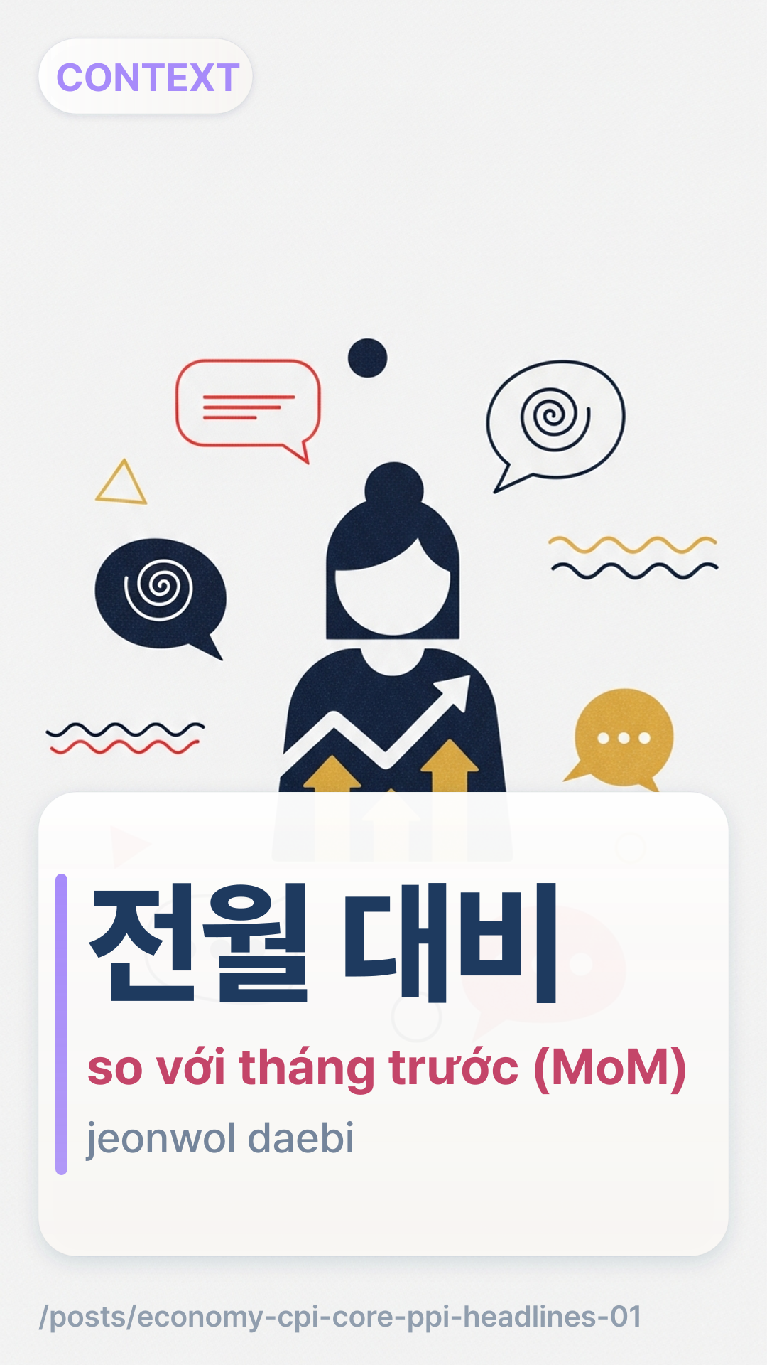 소비자물가sobijamulga), core (근원물가geunwonmulga), hoặc PPI (생산자물가saengsanjamulga). Nếu thiếu, coi tiêu đề là chưa đầy đủ. - Mỗi lần thấy số, làm “kiểm tra đơn vị”: