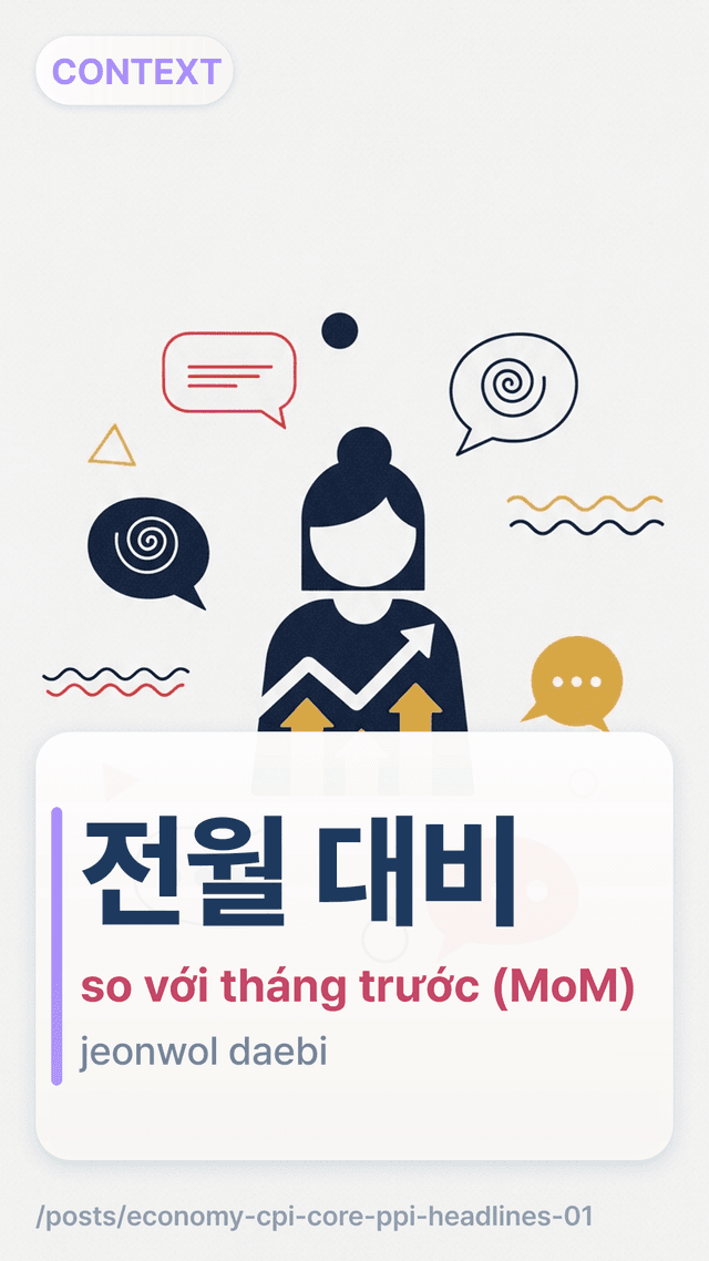 Dùng lưu đồ ‘đang đo cái gì?’ để giải mã các tiêu đề CPI·근원물가·PPI và luyện cách diễn đạt MoM/YoY để không bị đảo nhầm số liệu.