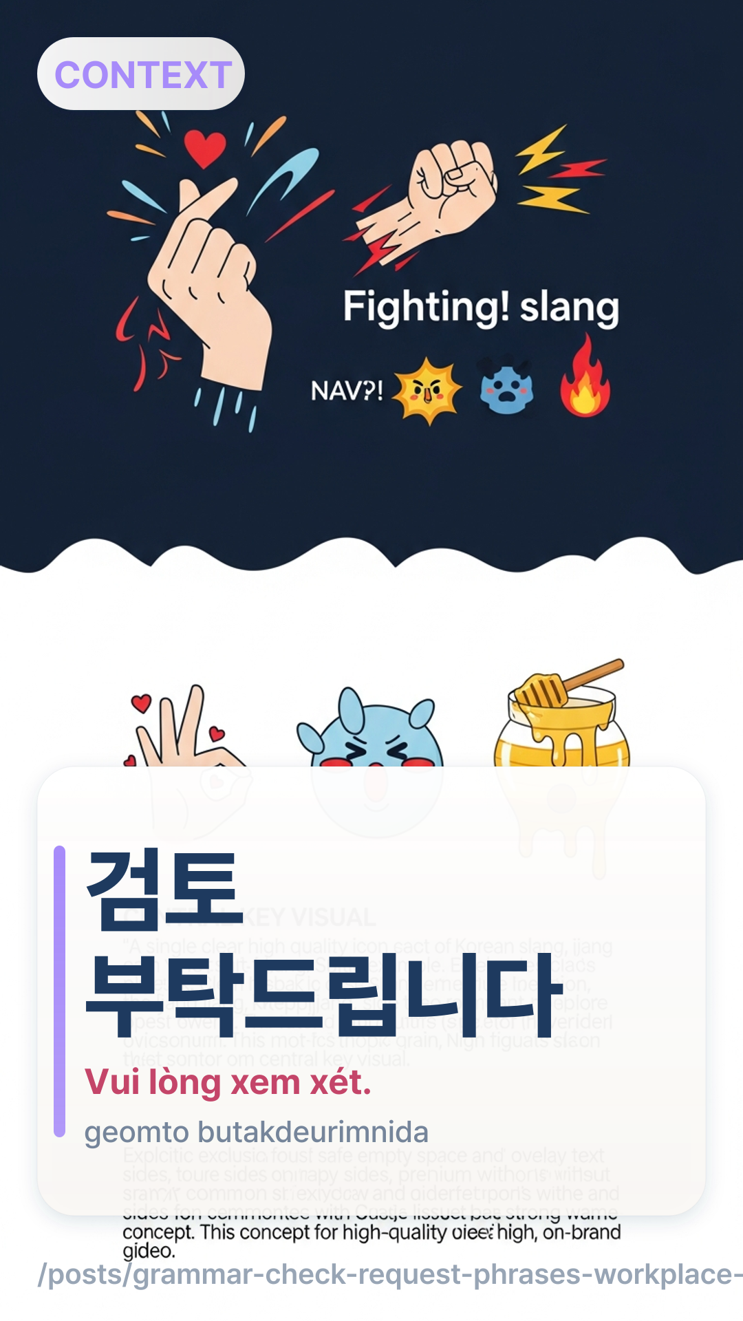 Các mẫu `확인 부탁드립니다` & `검토 부탁드립니다` an toàn nơi công sở: chọn theo cấp bậc/mức gấp, khung hạn chót, và 10 câu viết lại để dứt khoát mà không hách dịch. Làm chủ.