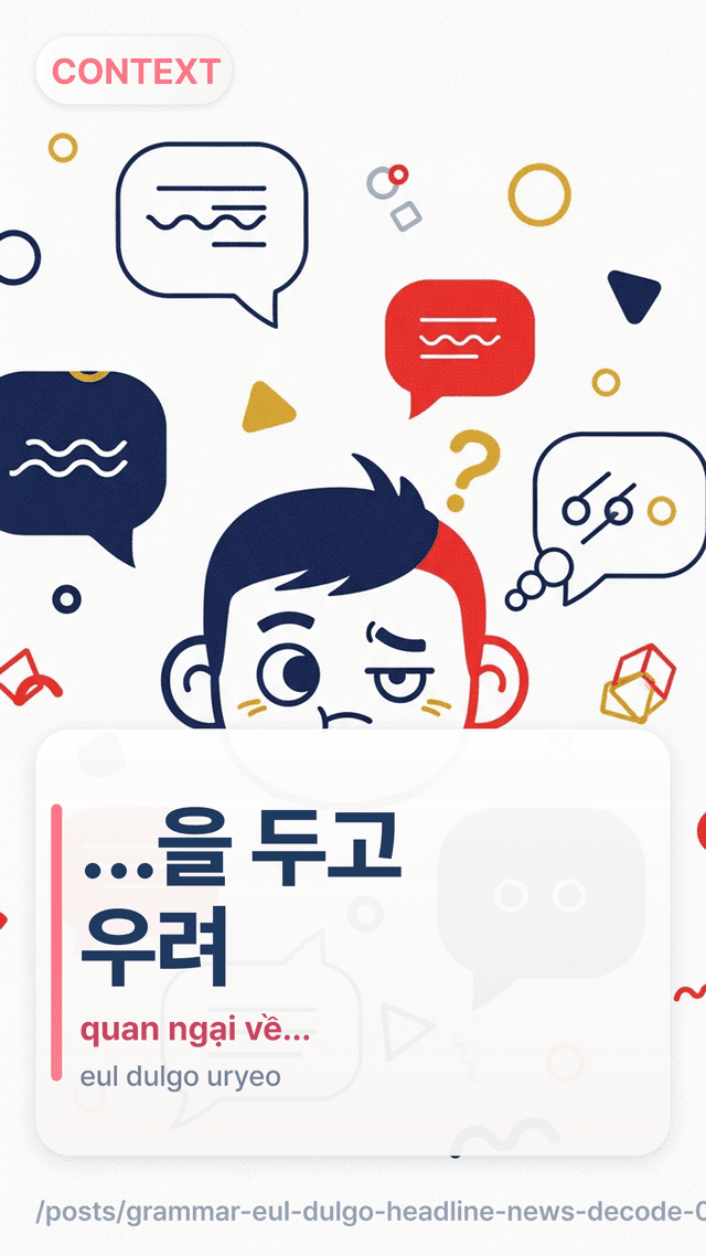 Một “cây quyết định put vs about vs over(tranh cãi)” + 12 bản viết lại từ tít báo → câu chat giúp bạn hiểu -(으)ㄹ/을 두고 mà không bị dịch sai theo nghĩa đen “đặt/để”.