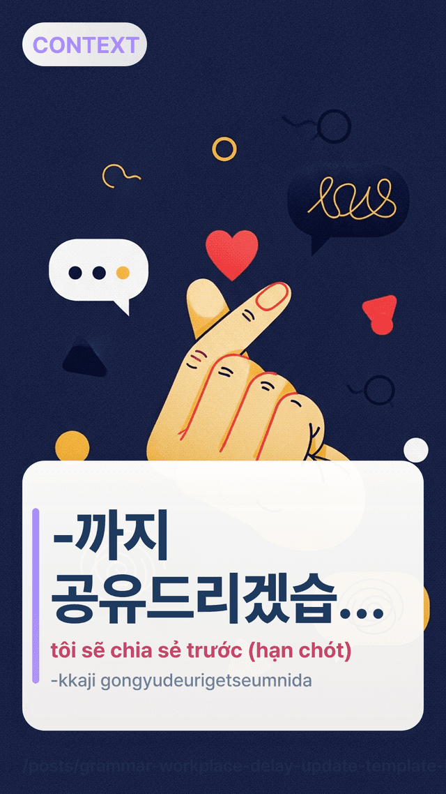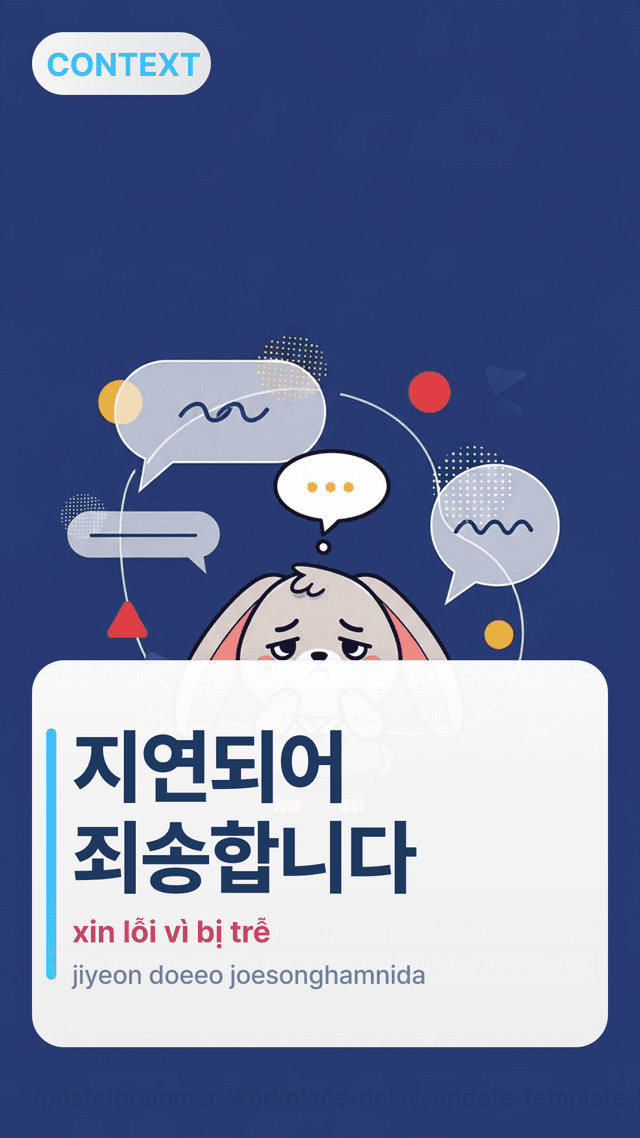 Dùng 지연되어 죄송합니다 và -까지 공유드리겠습니다 để cập nhật trễ hạn rõ ràng với ETA cụ thể tại nơi làm việc—làm chủ.
