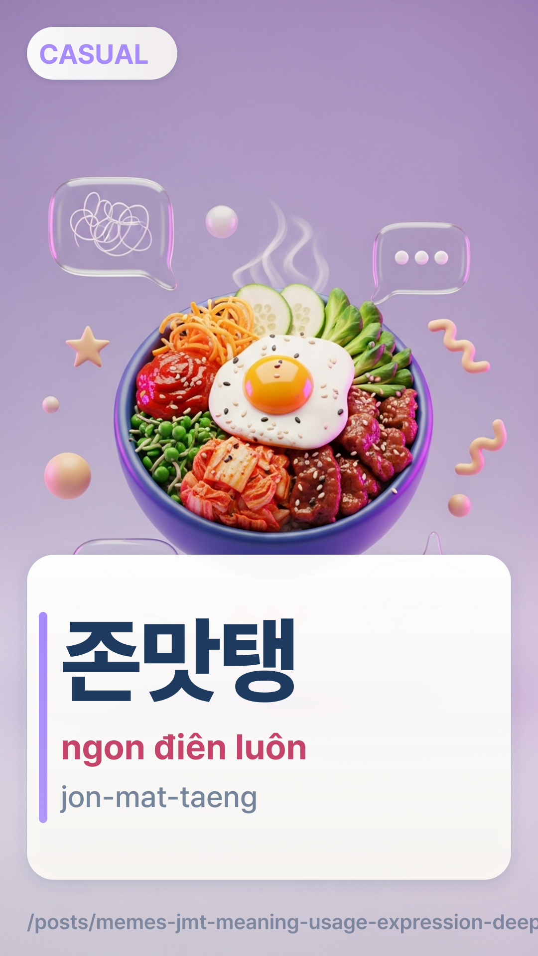 존맛jonmat /존맛탱jonmattaeng /존맛탱구리jonmattaengguri (vibe meme mạnh hơn)JMT(viết tắt ngắn)
