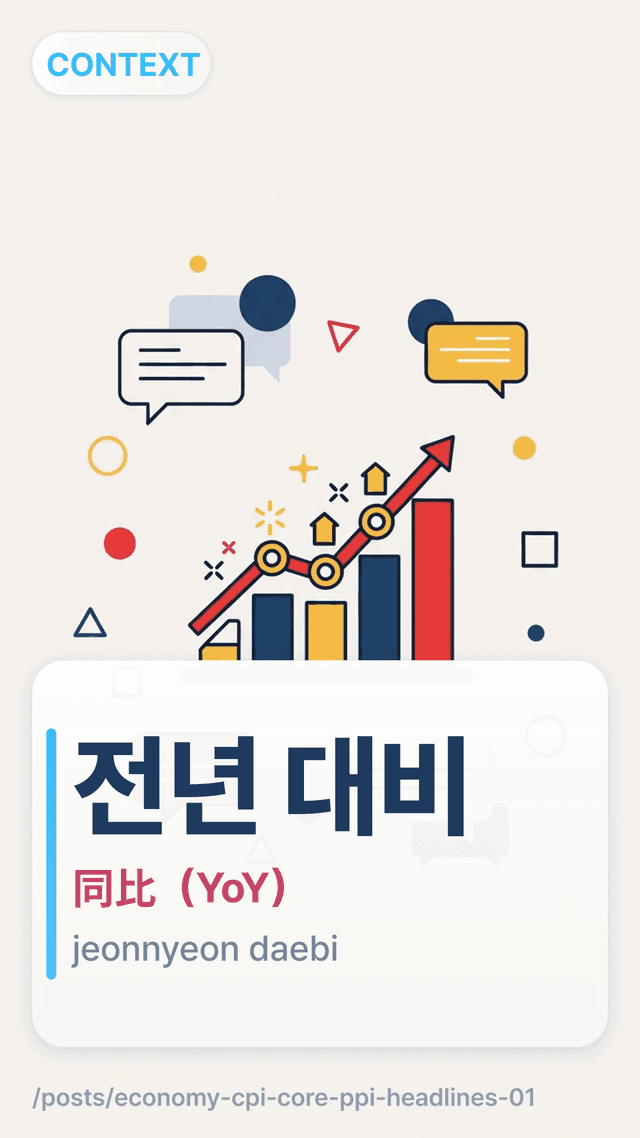 用简单流程图、常见搭配和数字操练读懂 CPI 标题里的 전년 대비/전월 대비,避免把时间线看反。