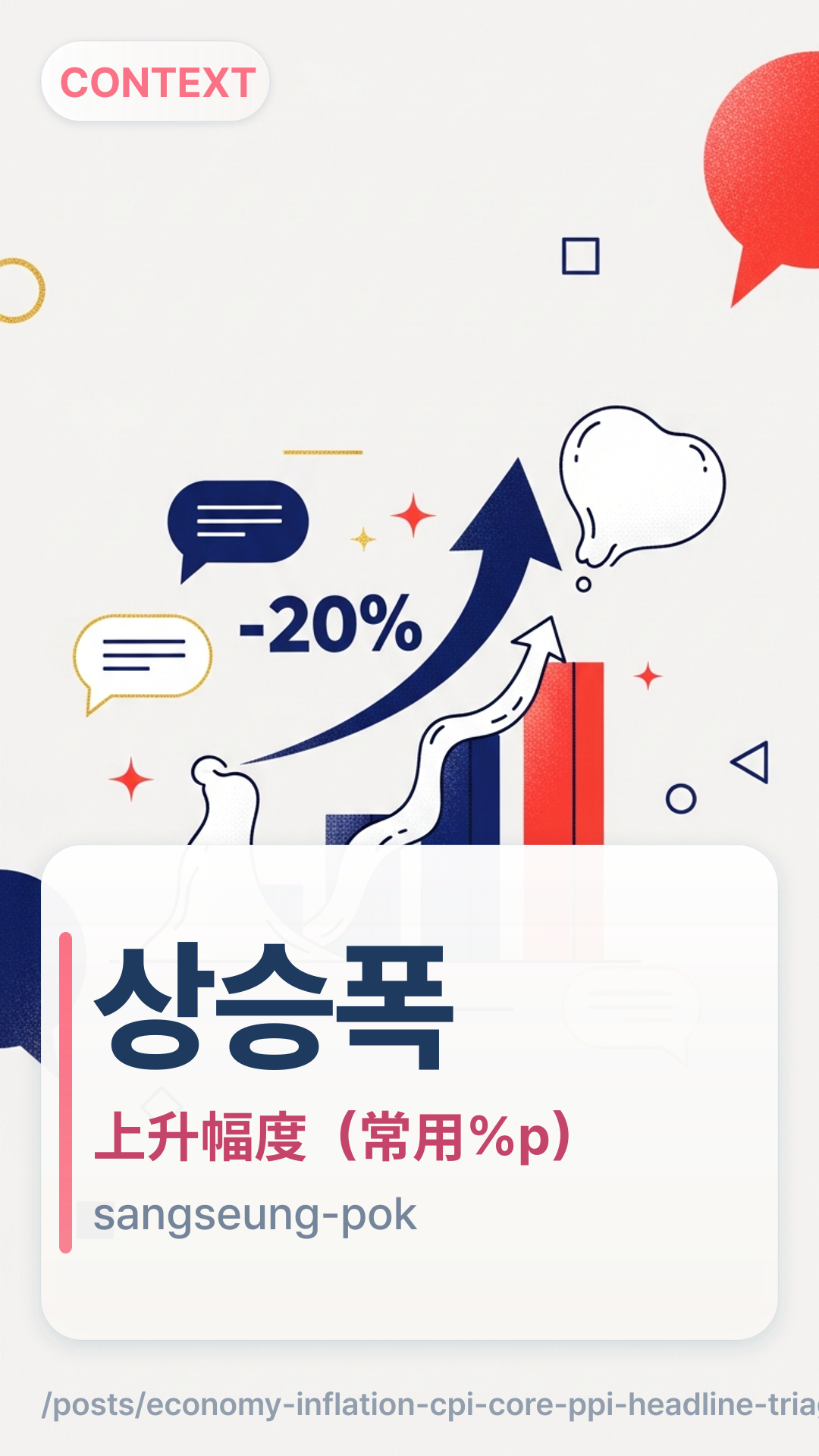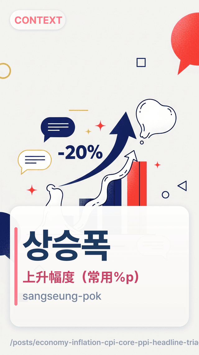 상승폭sangseungpok是“上升的幅度有多大”。在通胀标题里,它常常自然地与%p(百分点)搭配,因为你谈的是“比率的变化”,而不是“比率本身”。