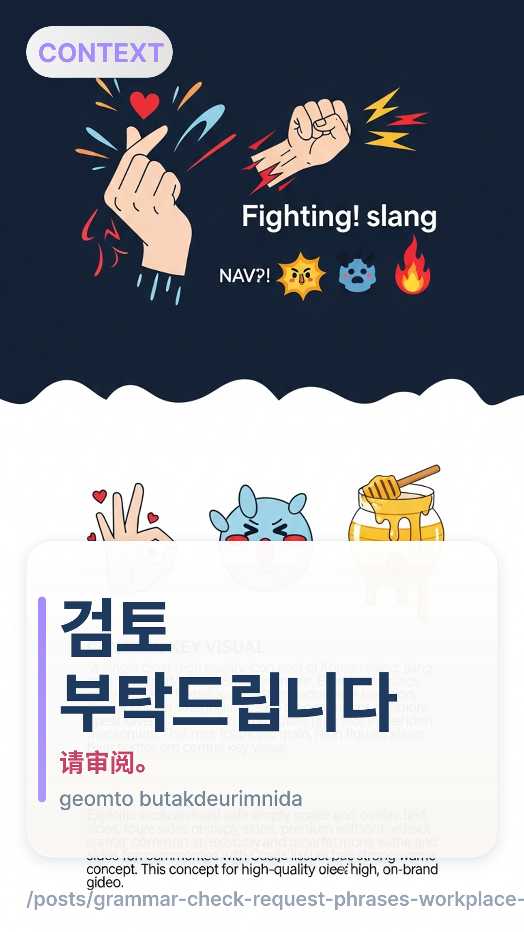 职场可用的 确认 부탁드립니다 & 검토 부탁드립니다:按上下级/紧急度选择表达,套用截止时间槽位,并提供 10 个改写,让语气坚定但不强势。掌握这两句。