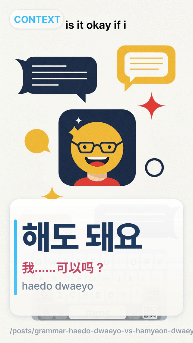 常见陷阱:学习者会把它替换成 하면 돼요hamyeon dwaeyo,因为两者都含“做”。但含义会从“我可以吗?”翻转成“你就这样做”,在职场里很容易听起来像是在发指令。