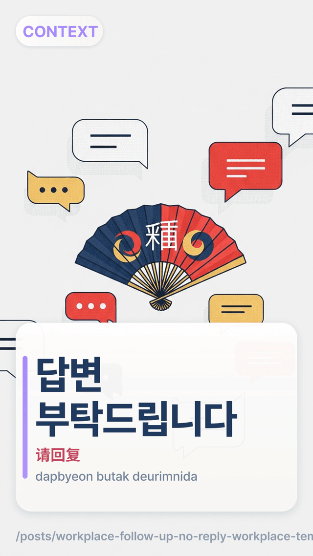 这是一个职场安全的跟进模板:当你发了消息(邮件或 KakaoTalk)却没收到回复时可以用。在我第一份韩国办公室工作里,我曾不小心对前辈写了 확인하세요hwaginhaseyo;语法没错,但听起来像在下命令。下面这两句话能让你“提醒一下”但不显得冷。